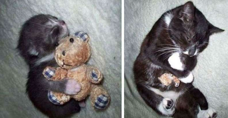 15 zdjęć kotów z ulubionymi zabawkami z dzieciństwa – przed i po